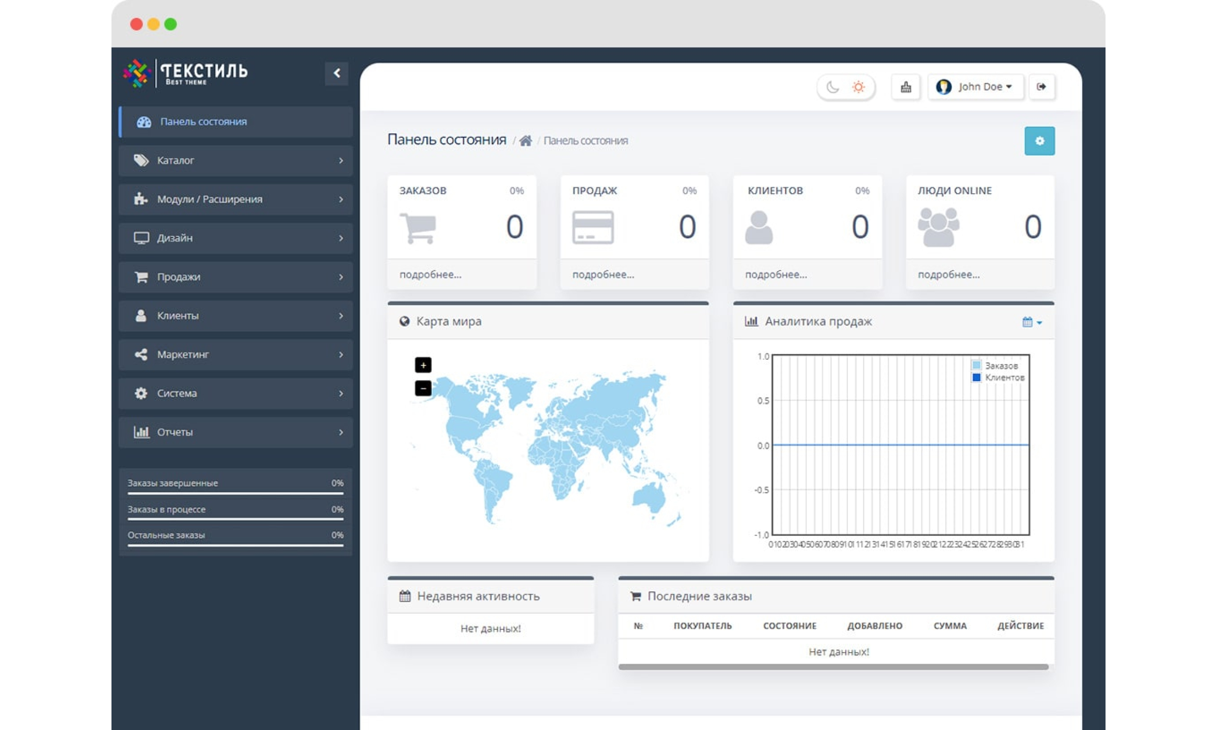 Textile Admin Theme v1.0.6 - стильна тема панелі адміністратора для OpenCart 3.x