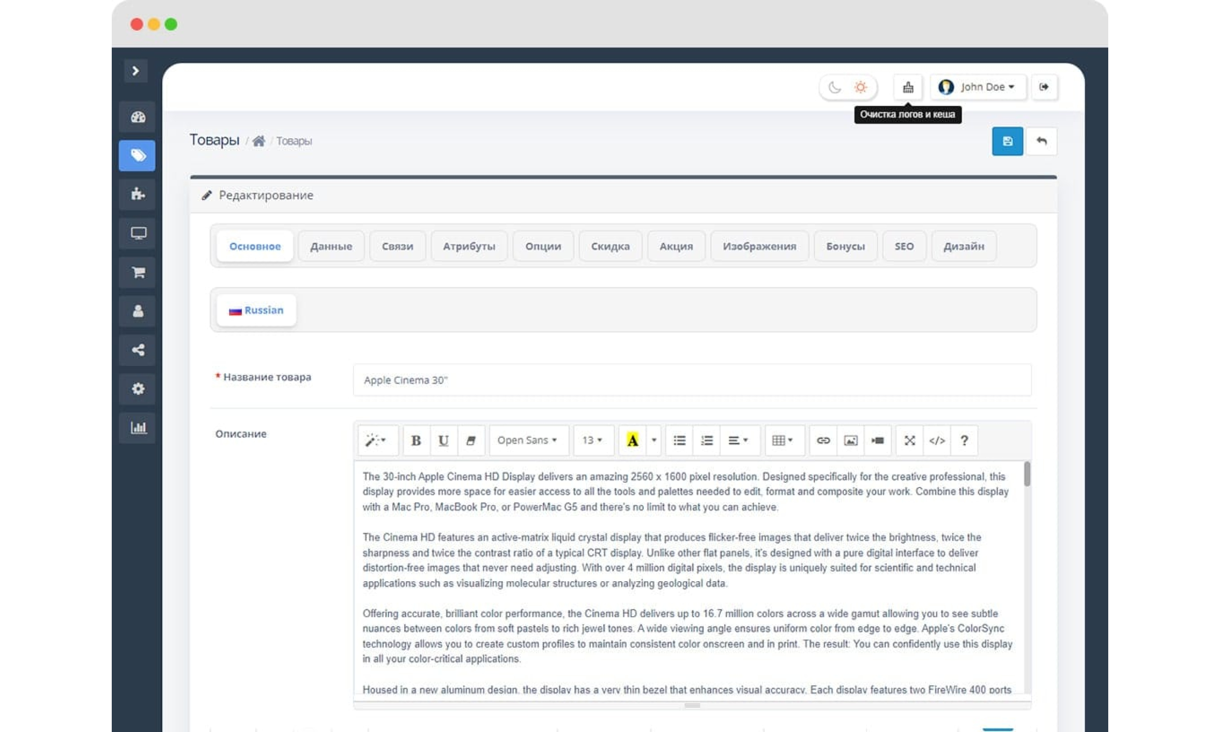 5) У тему інтегрований модуль для очищення кешу та логів. Можна вивести кнопку у шапку.